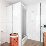 As casas de banho também incluem casa de banho separada e chuveiro. Lençóis de banho e toalhas estão incluídos para maior conforto.